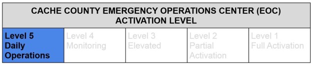 The Cache County Emergency Operations Center is at Level 5, Daily Operations